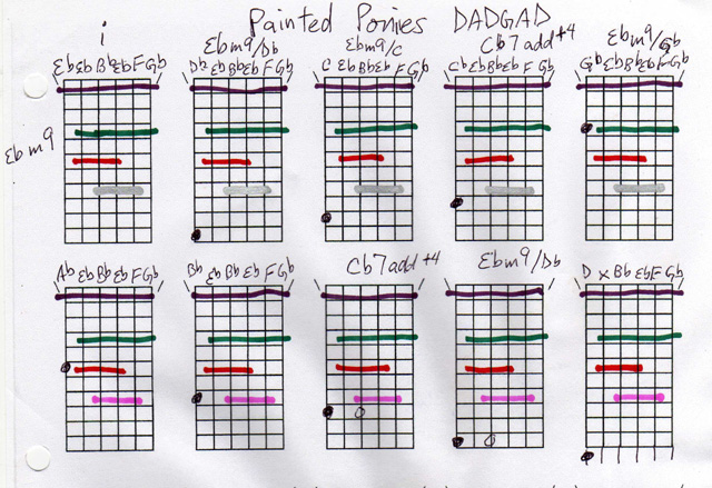 This is what I do... here is my chart of "Painted Ponies"... the lines denote capos and the dots are fingerings. I hope you notice that every chord in this chart is fingered with one finger!